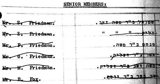 Members Hebrew Names