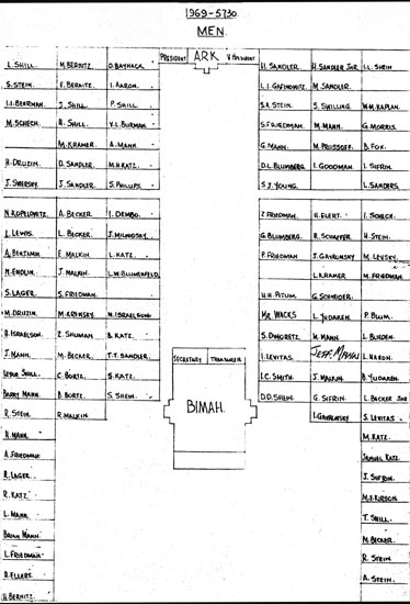 1969 Men's seat locations in the old Shul
