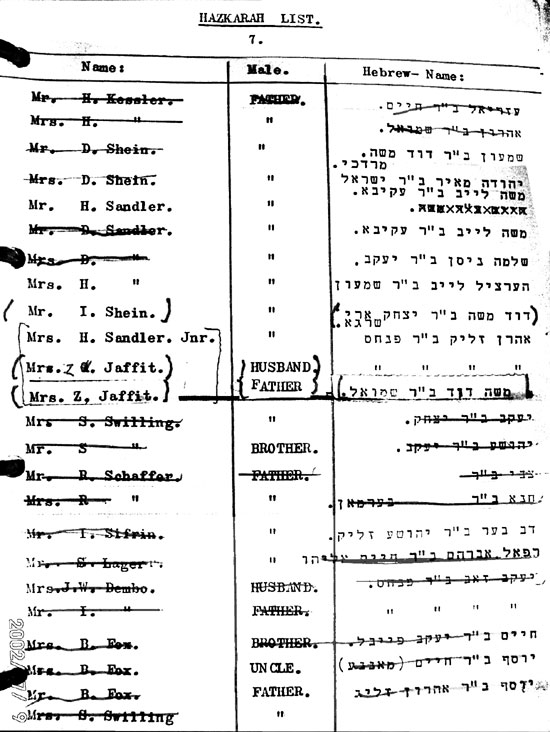 Hazkarah (memorial) Hebrew Names List 1.
