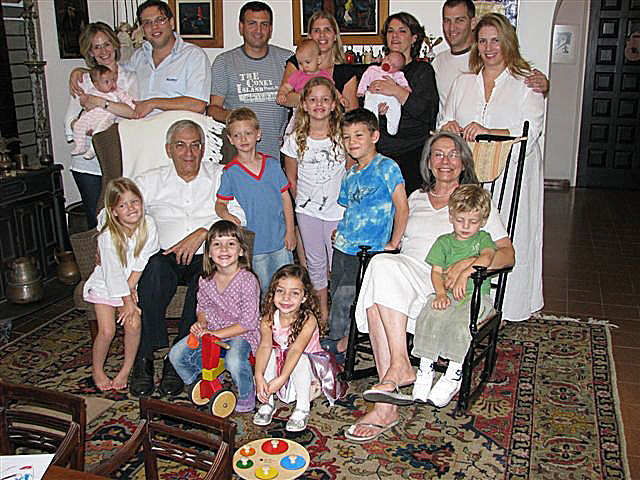 Who does what? Nava is a venture capitalist, the CEO of Yissum, the technology transfer company of the Hebrew University until December 2008 and recently divorced. Guy is a private banker with his own company - Excaliber Capital Reut is a social worker and lawyer, currently taking a year off to raise Alona and the other three and renovate a new house. Micah is a squadron commander in the South. Shachaf is an industrial engineer also taking time off to settle her family on the airforce base and raise Tamar. Hadar is a businessman with international connections. Nitzan is a winemaker who will start working when Eva is a little bigger. Barry continues to re-invent himself in the business world every couple of years, mainly in the field of energy, serves as an eminence grise in the Army Spokesman's office and sits on various cultural boards. Ann has a PH D in history, founded and chairs Sia'h vaSig: The Israel Debating Society, instructs and practices taichi, earned a private pilot's licence and two-star diving certificate ten years ago and spends many happy hours with the grandchildren. |