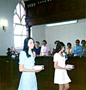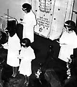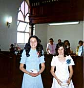 I am looking for more photos of the old Shul and Communal Hall taken from the outside and inside. Please email me if you have any. The photos below are from Mildred Goodman and Roslyn Gavronsky, taken at two Bat Mitzvahs. The first photo is from the Batvitvah of Roslyn Gavronsky, Avril Friedman, Helen Milwidsky and Maureen Friedman. The rest of the photos are from the Bat Mitzvah of Janet Goodman and Linda Morris. Click on any photo to view a larger version, then use the BACK button on your browser to return to this page.